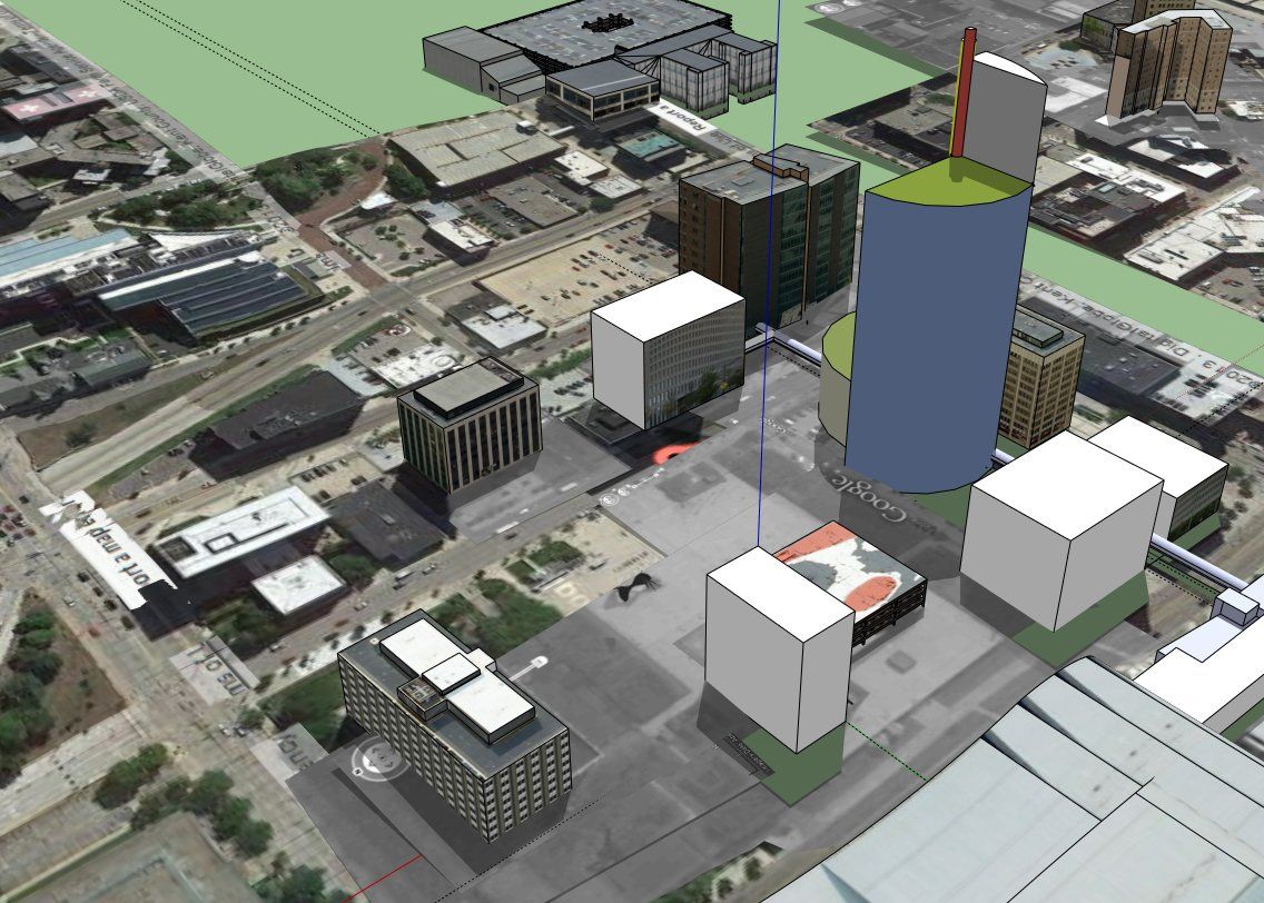 5/3 Campus proposal: An air-rights tower. A denser urban core. Public-private partnership.