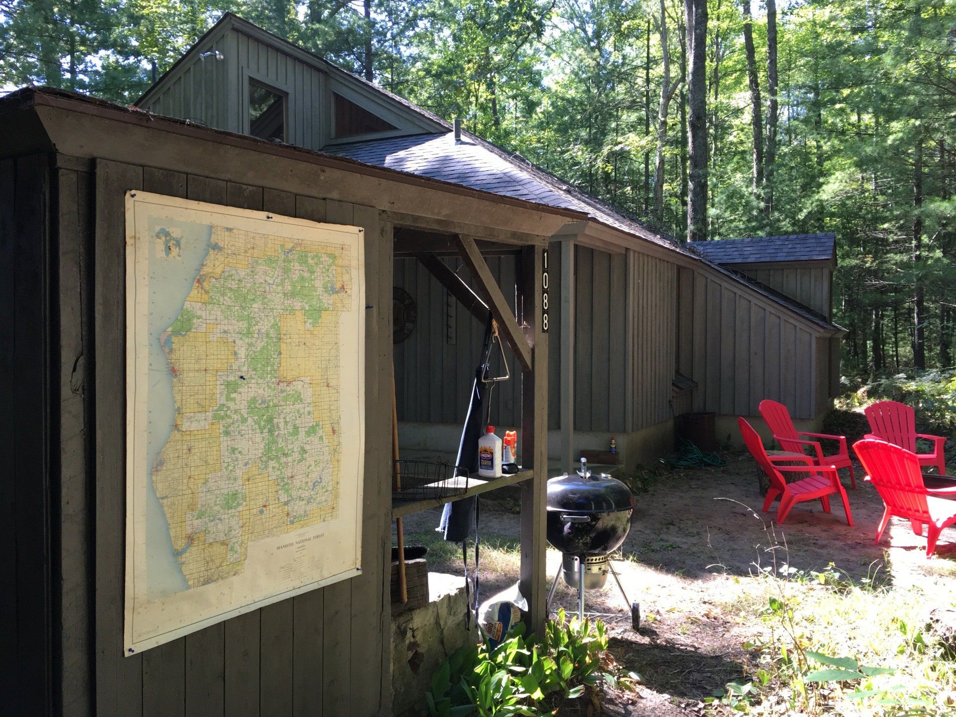 This property was first occupied in the 1930’s by a screened summerhouse gazebo and grill. Post World War Two, a flat-roofed concrete masonry cabin was built adjacent - a one room cabin for the hand-pump kitchen, dining, living and sleeping. Showers were next door and the out-house in the back woods.